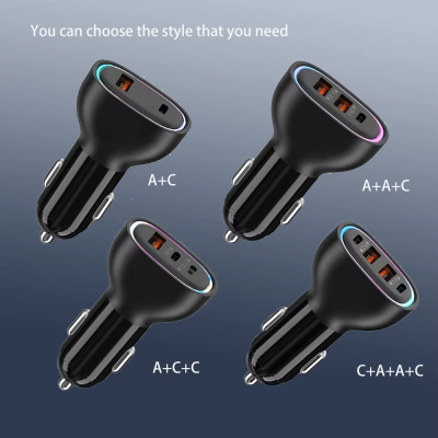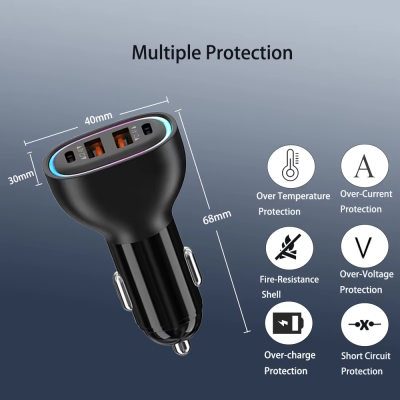PD QC3.0 Fast Car Charger 30W with 2 USB Ports and 2 Type-C Ports LED Display Fast Charging for Apple Android Phones and Tablets