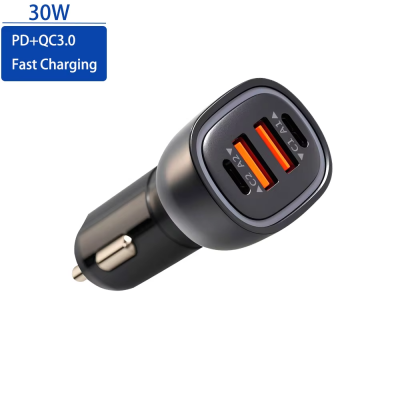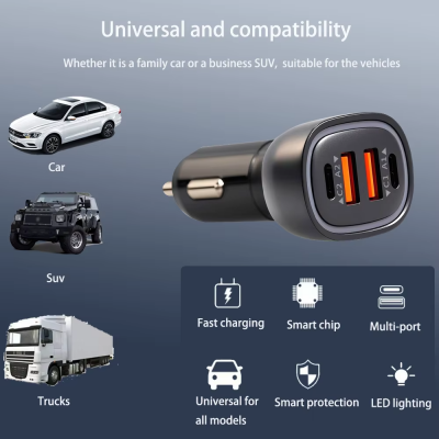 PD QC3.0 Fast Car Charger 30W with 2 USB Ports and 2 Type-C Ports LED Display Fast Charging for Apple Android Phones and Tablets